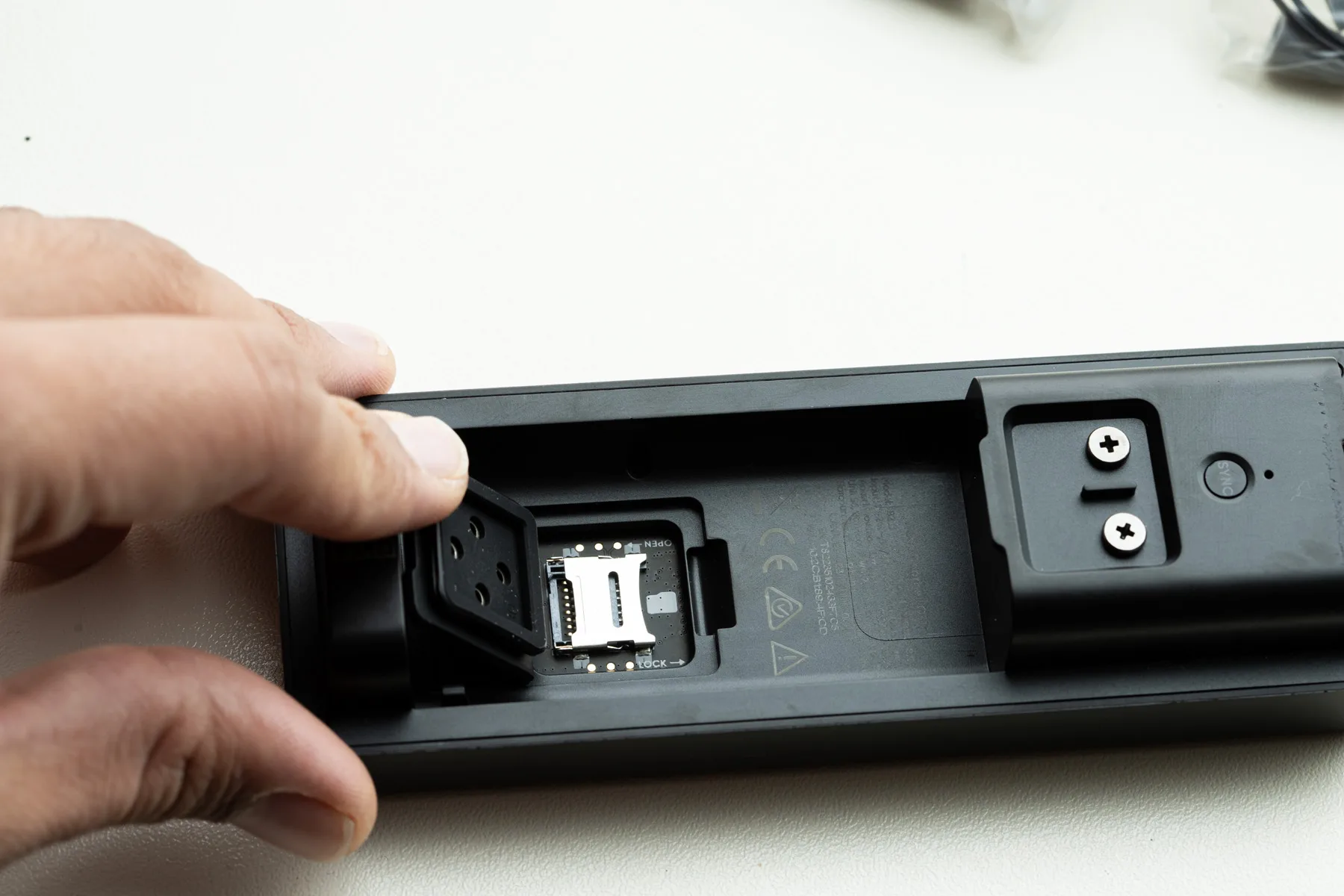 Achterkant van de Eufy C31 waar de Micro sd kaart onder de batterij geplaatst kan worden