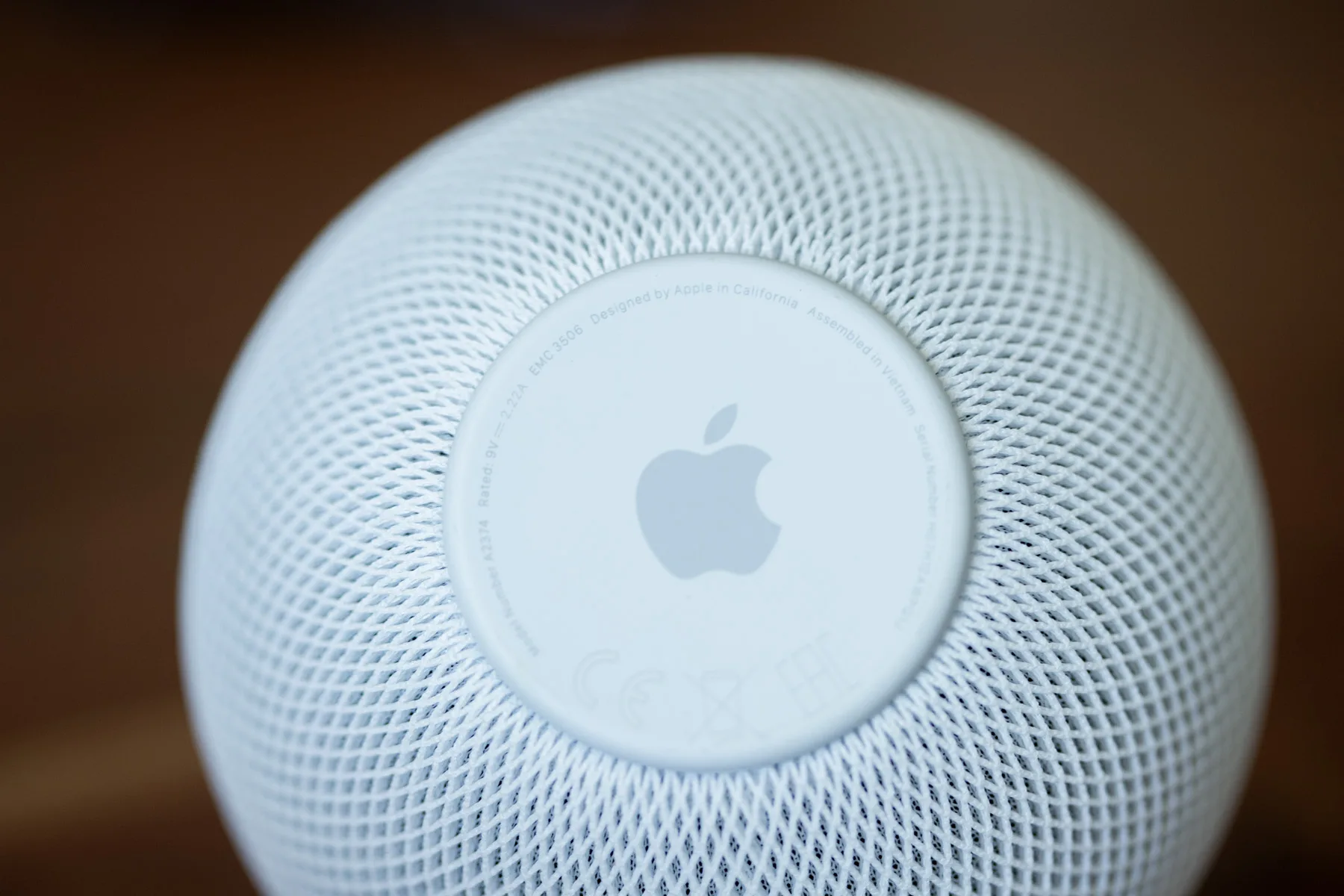Apple logo en specificaties op HomePod mini