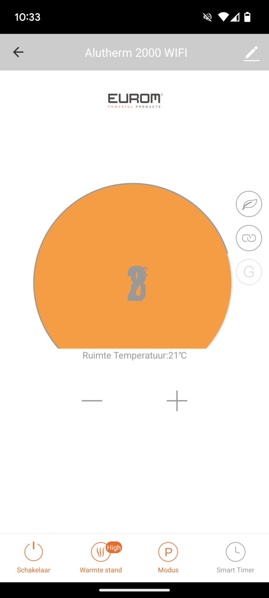 De Eurom Alutherm 2000 wifi werkt op het Tuya platform. Dat betekend dat de bediening via elke Tuya app mogelijk is. De fabrikant heeft ervoor gekozen om een eigen app te laten maken, deze heet Eurom Smart app en is hier te downloaden.