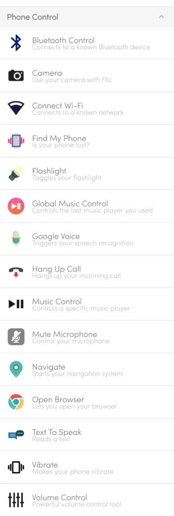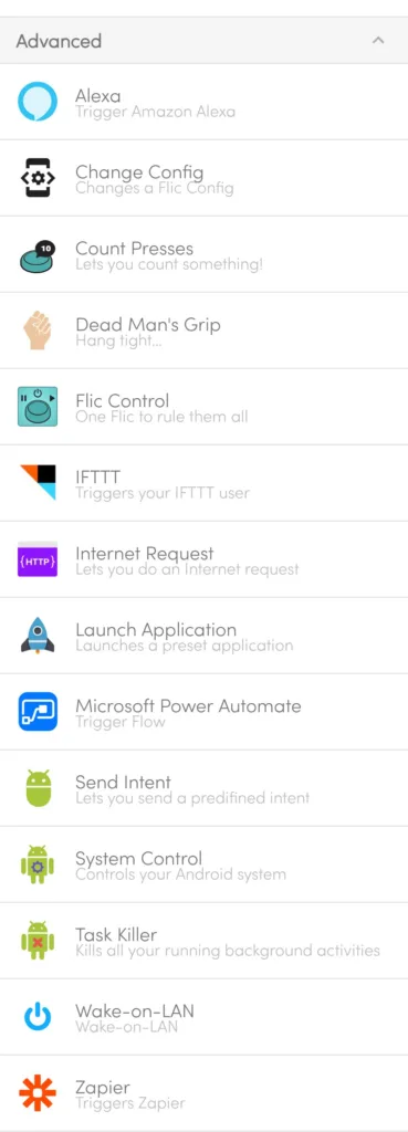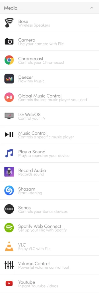 Met drie toewijsbare acties – een enkele klik, dubbele klik en lange druk – biedt de flic 2 button een intuïtieve bediening voor een scala aan acties. Enkele voorbeelden van mogelijke acties zijn: