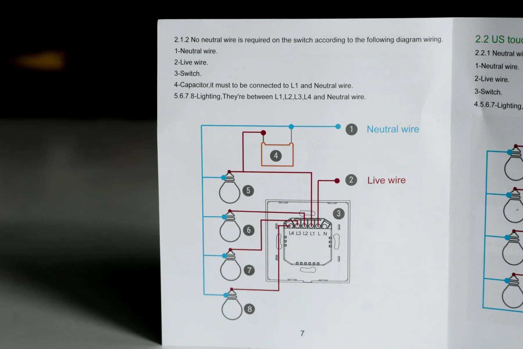 In bovenstaand schema zie je hoe de bedrading wordt weergegeven. Punt 2 is het draad waar altijd stroom op staat, ook wel het fase draad genoemd. De kleur van het fase draad is altijd bruin en wordt op de ingang van de schakelaar (L) aangesloten. De schakelaar schakelt deze vervolgens aan of uit. Daarom wordt een andere draad aangesloten op de uitgang (L1), namelijk het schakeldraad. Het schakeldraad is altijd zwart en gaat van de schakelaar naar de verbruiker (zoals een lamp).