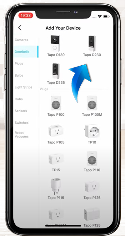 5. Selecteer in het linker menu het type apparaat ‘doorbells’ en selecteer de D230